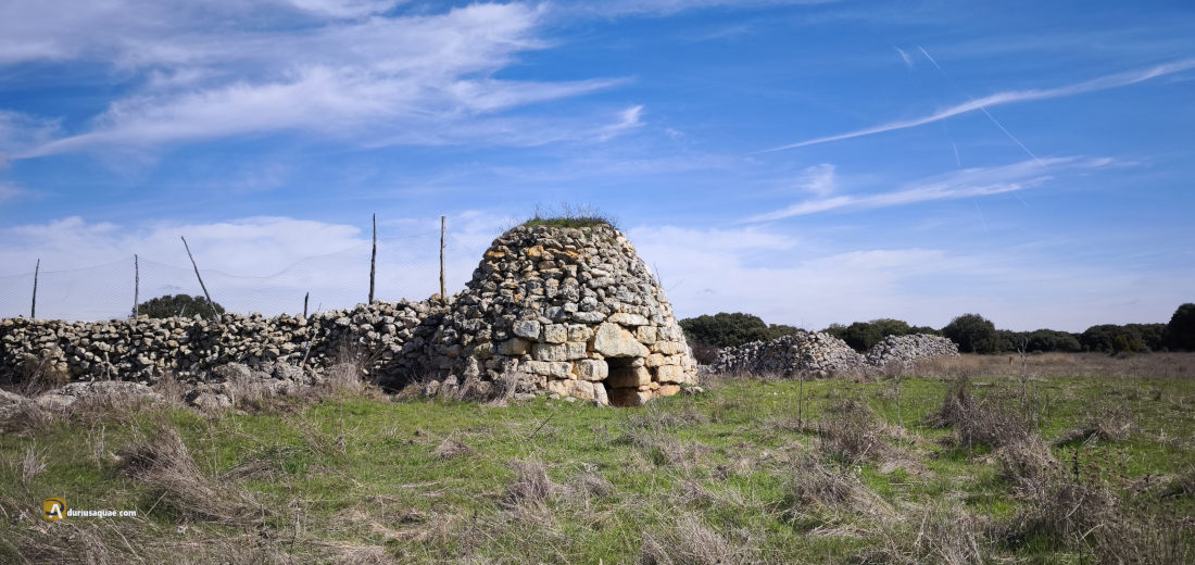 El paseo es agradable. Sin darnos cuenta estamos en el páramo, y, tras librarnos de unos mastines celosos, vamos encontrando los restos de los corrales que tanta vida dieron a estos montes. En el páramo de la Muñeca los corrales son barrios desvencijados; sus muros desmoronados aún mantienen los viejos postes que sujetaron las teleras contra el lobo. Y ¡vaya!, algunos chozos van apareciendo erguidos, luciendo sin complejos sus rústicas bóvedas realizadas a base de aproximar hiladas de piedra caliza. Ningún vendaval es capaz de derrumbarlos salvo el del abandono.