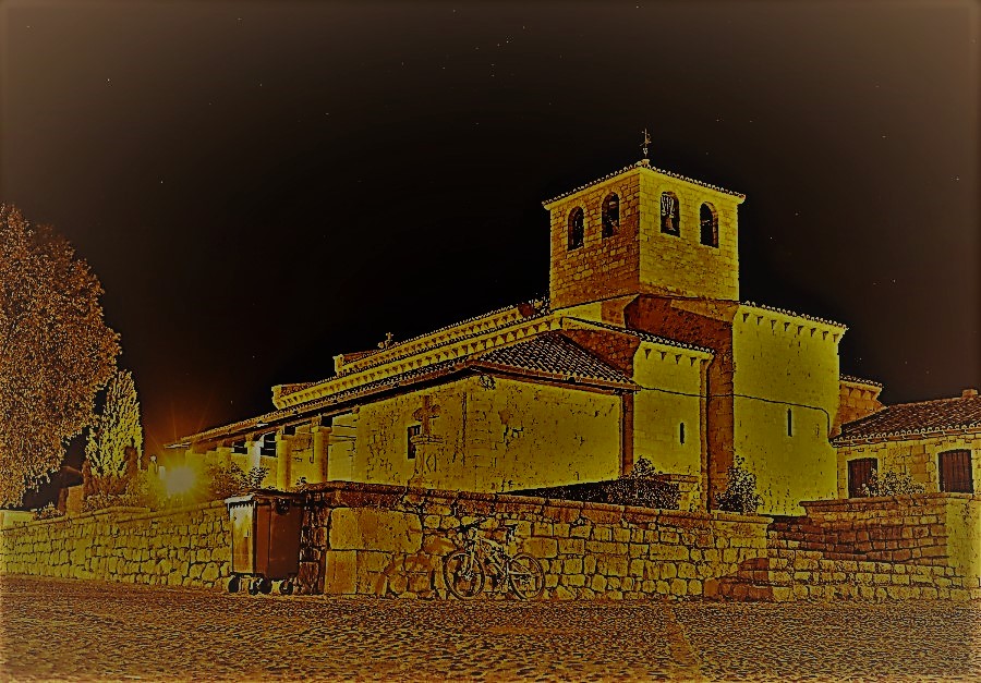Imagen nocturna de la iglesia de Santa María de Wamba
